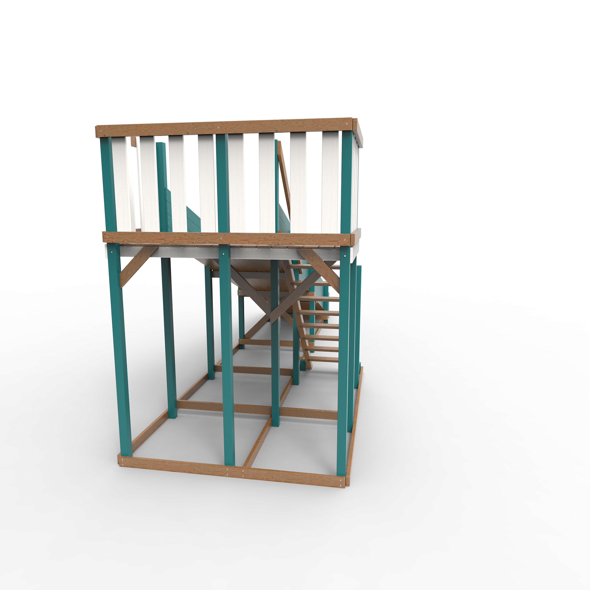 Все столбы и качельная балка площадки выполнена из высокопрочного клеёного бруса камерной сушки сечением 90х90мм.