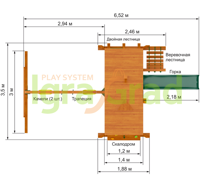 Габариты игрового комплекса для детей составляют: