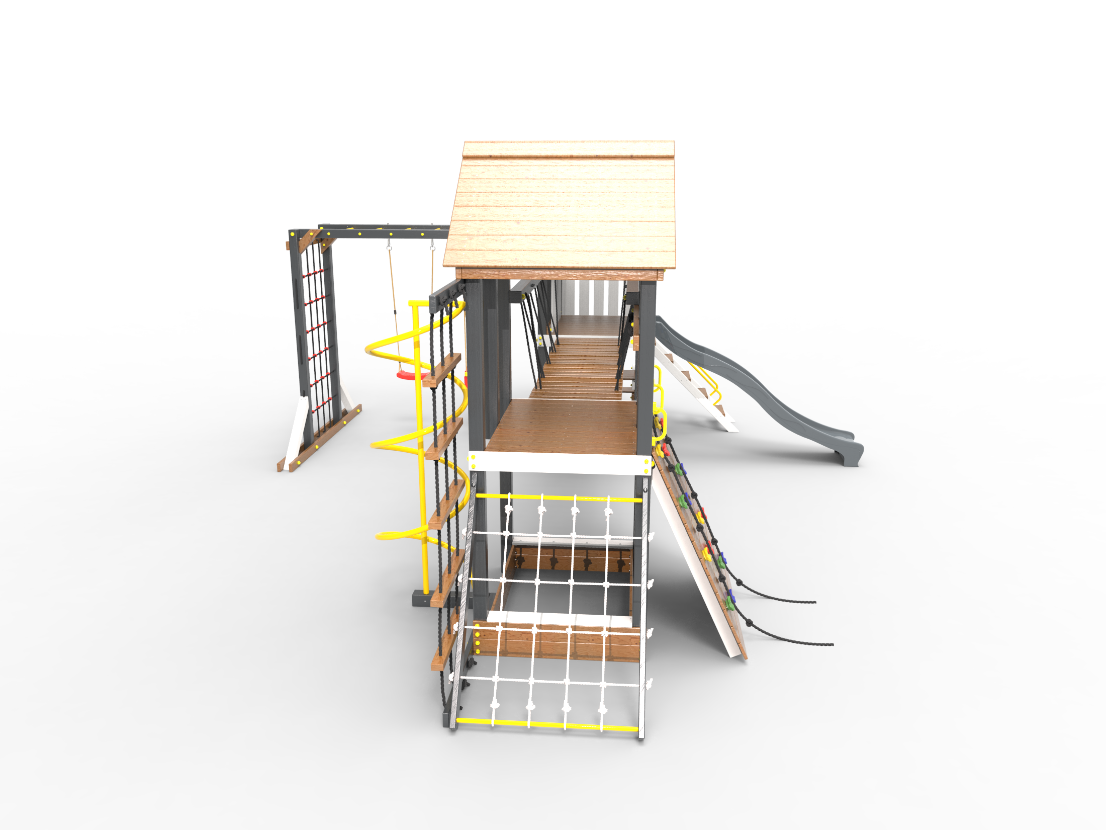 Обращаем Ваше внимание, что фактический цвет детской площадки может отличаться от представленных фото на сайте. Специфика окраски нетоксичными пропитками и красителями допускает отклонения в цветовой гамме отгружаемых изделий. Также обратите внимание, что фактический цвет может отличаться из-за цветопередачи устройства на котором Вы смотрите фото. Производитель оставляет за собой право менять цвет отдельных деталей и комплектующих(включая пластик, канаты и пр.), при этом сохраняя весь функционал и характеристики товара.