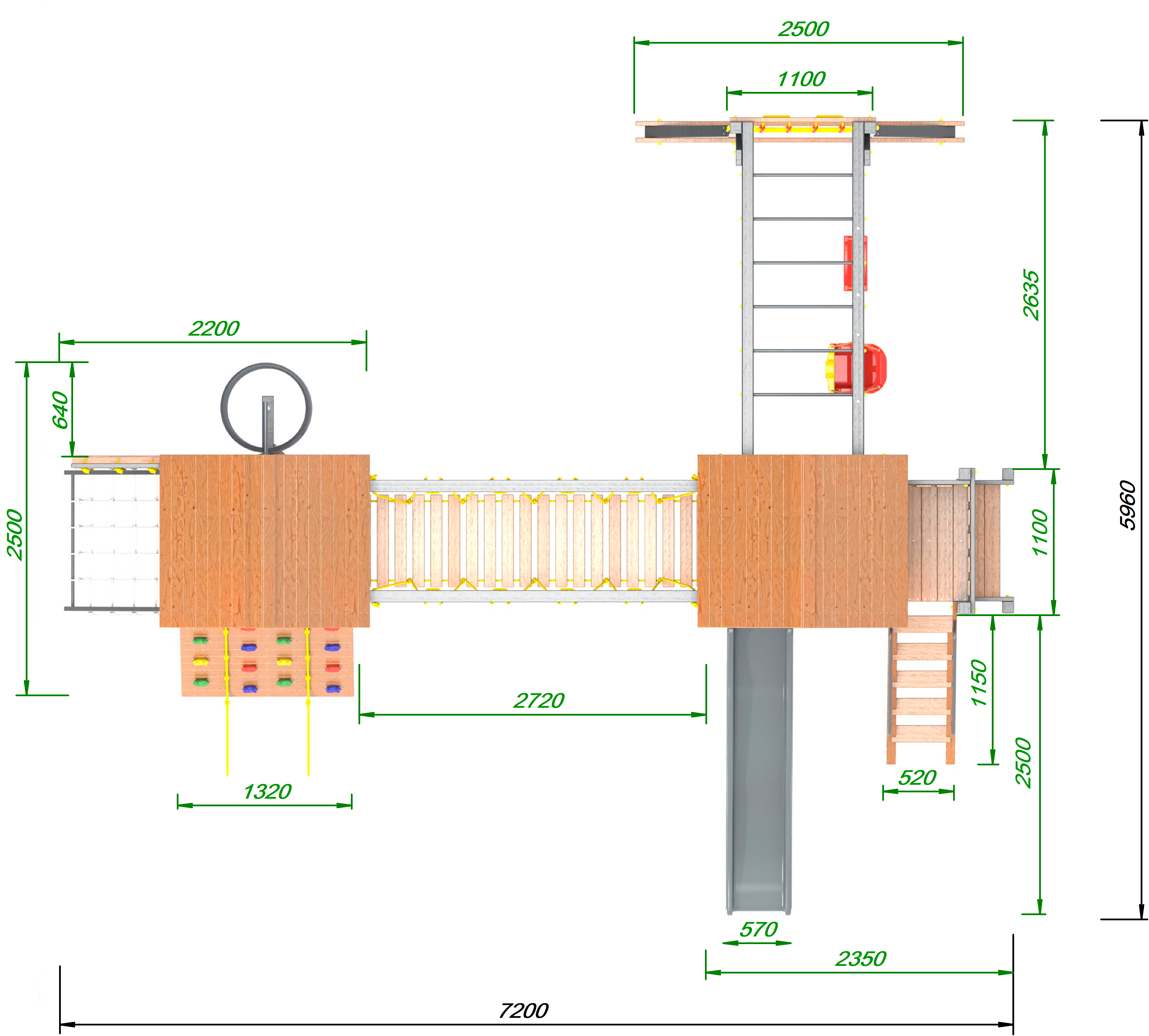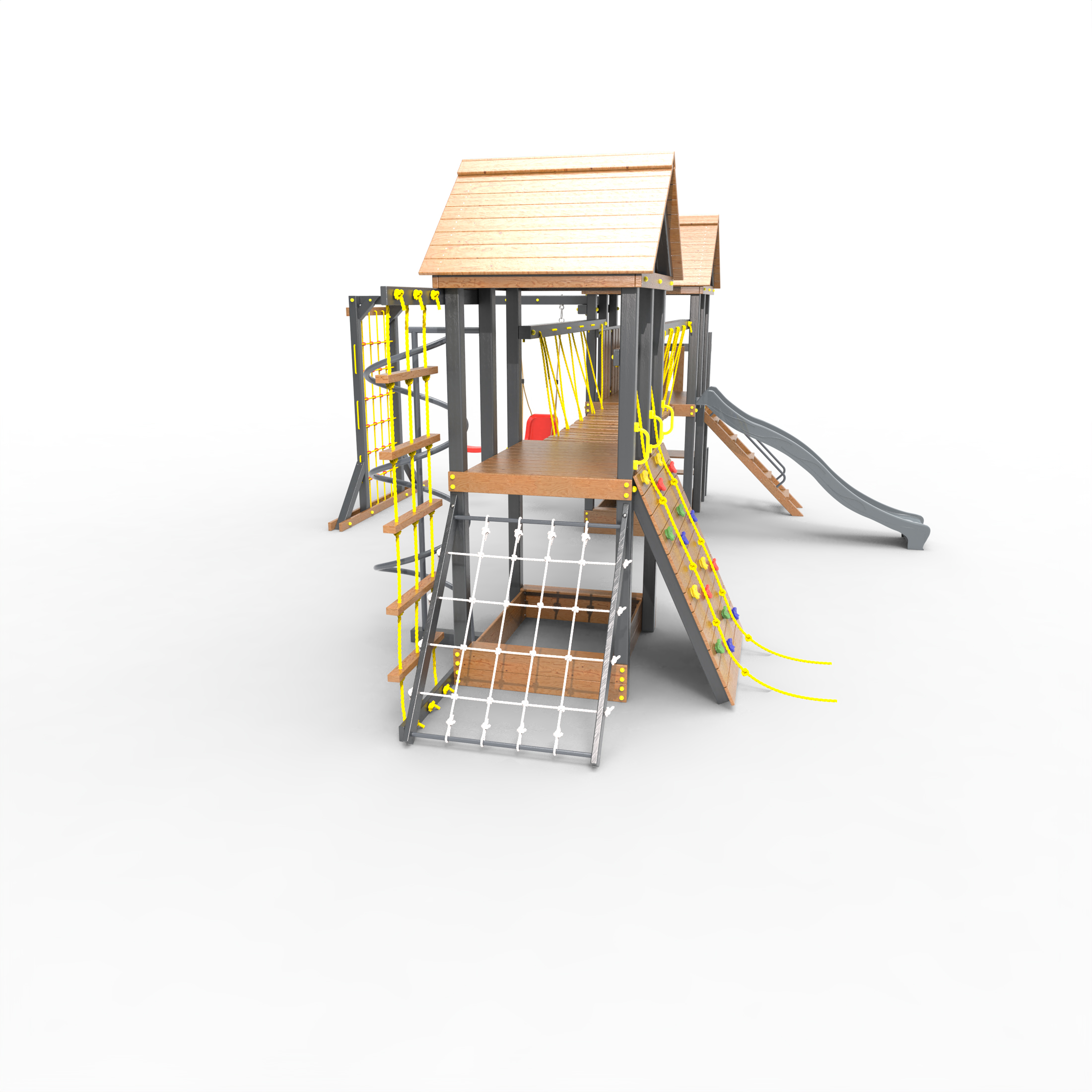 Обращаем Ваше внимание, что фактический цвет детской площадки может отличаться от представленных фото на сайте. Специфика окраски нетоксичными пропитками и красителями допускает отклонения в цветовой гамме отгружаемых изделий. Также обратите внимание, что фактический цвет может отличаться из-за цветопередачи устройства на котором Вы смотрите фото. Производитель оставляет за собой право менять цвет отдельных деталей и комплектующих(включая пластик, канаты и пр.), при этом сохраняя весь функционал и характеристики товара.