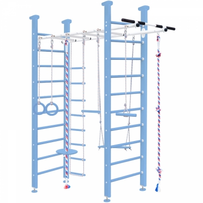 Комплектация: турник лиана, вер.лестница, качель, трапеция, кольца, тарзанка, канат,