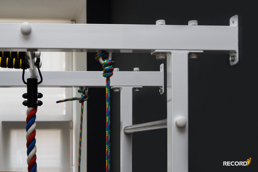 Универсальный съемный турник. Имеет 3 вида хватов - классический средний на ширине плеч, узкий параллельный и широкий хват. Вылет от стены 50 см позволяет не касаться шведской стенки при выполнении некоторых упражнениях.
